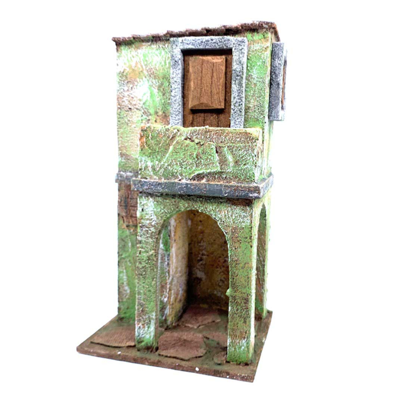 Casa 2 piani con balcone per statuine cm 10, per presepi, competamente realizzata a mano. Artigianato italiano.