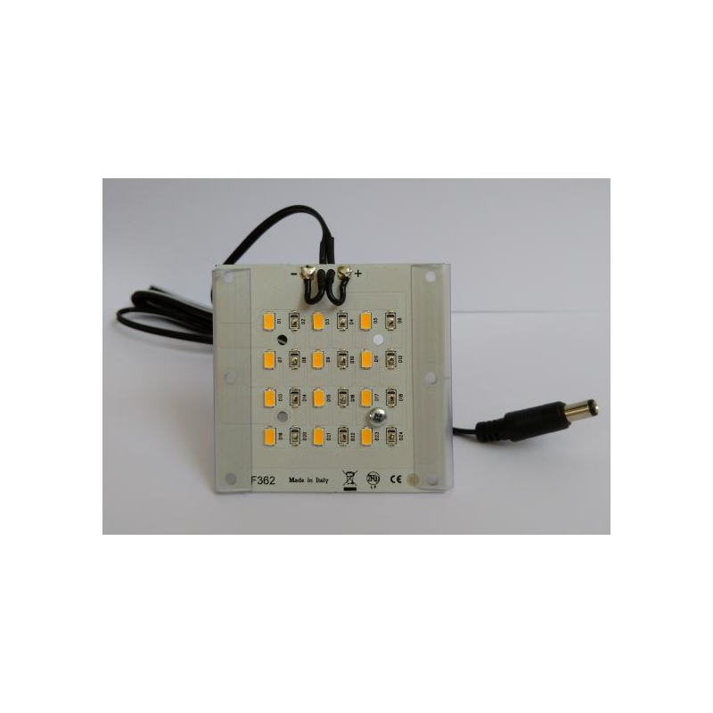 Lampada faretto LED.Prodotta per le nuove tecniche di illuminazione a LED, dotata di supporto orientabile e cavetto di alimentazione con spinotto Ø 2,5 mm collegabile direttamente, in dissolvenza, alle centraline FRIALPOWER (art. 5365) e FRIALMAXI (art. 6020).La lampada di base è proposta con luce BIANCA CALDA. Alla lampada sono appilcabili gelatine di vario colore (modello GL), ottenendo una vasta gamma di colori. Le gelatine sono facilmente applicabili e rimovibili.CARATTERISTICHE:Adatta per le dissolvenzeDisponibile 4W e 7WCavetto mt.2 e spinotto Ø 2,5 mmDim. 70x70 mm
