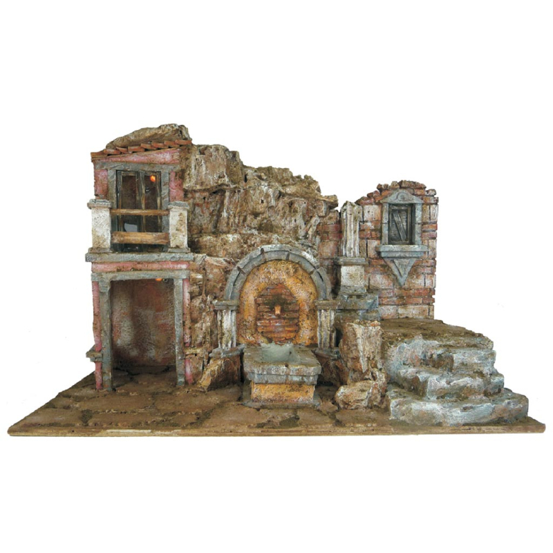 Presepe completo per figure cm.10 con luce e fontana funzionante