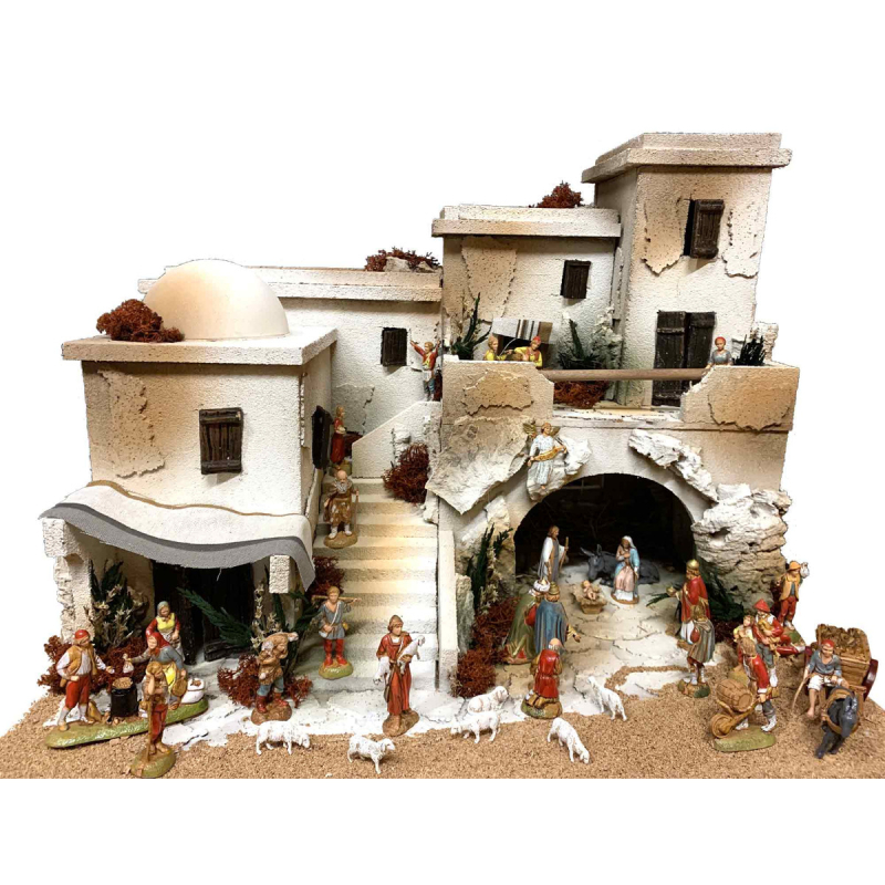 Presepe arabo (palestinese) 2 piani per statuine 8 - 6,5 - 6 cm