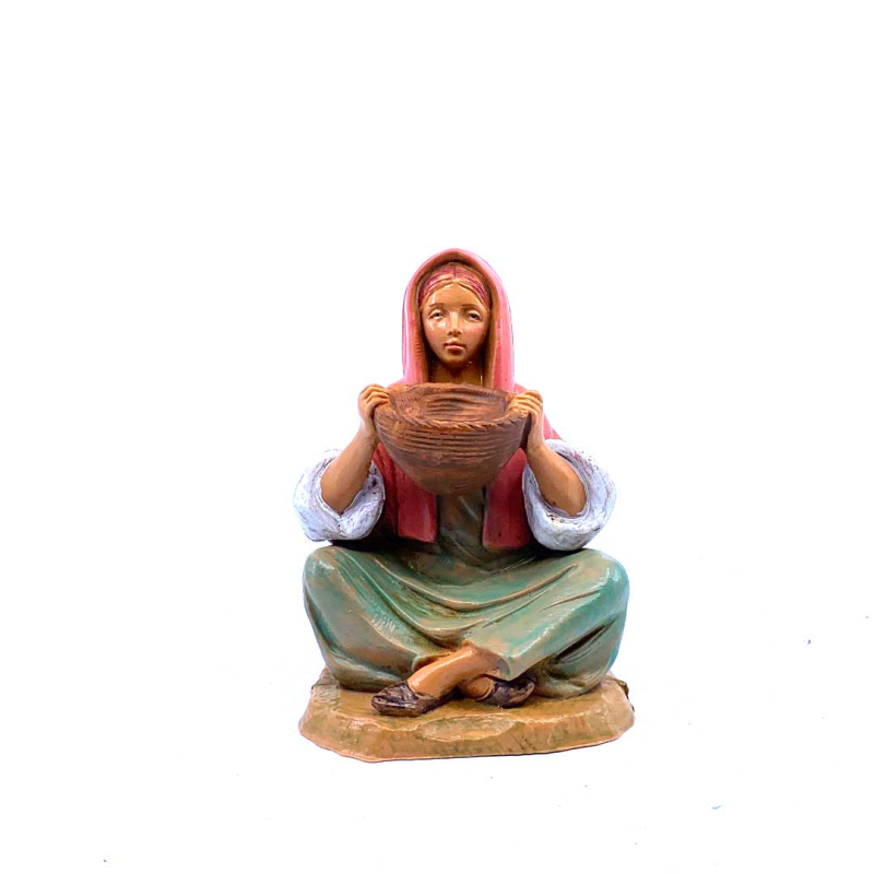 Pastorella seduta con cesto - Statue Fontanini cm 12